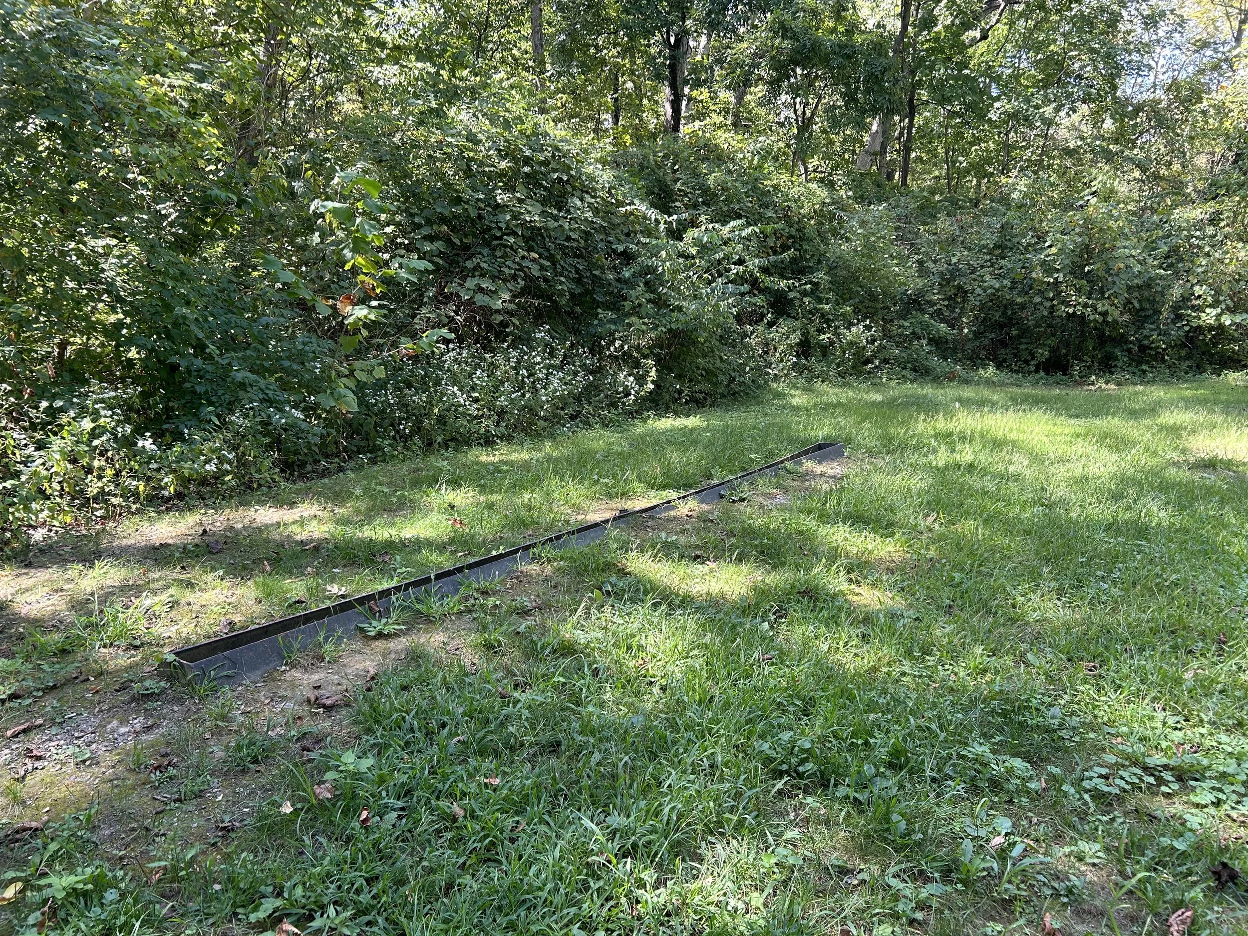 Michael Heizer's Compression Line, 1968, is a hollow, rectangular steel chamber embedded in the earth. The seventeen foot steel frame is pinched at its center point, shaping the land and highlighting the negative space within. Inspired by his father’s work as an archaeologist, providing him with exposure to the field through travels to Bolivia, Peru and Mexico City; Heizer’s sculptures literally take on the form of monumental excavations and earth constructions. An important figure in the Land Art Movement of the 1960’s and 70’s, his tense manipulation of COR-TEN steel to create a crack in the earth, encourages the viewer to think about the complex relationship between humans and the built and natural environments.